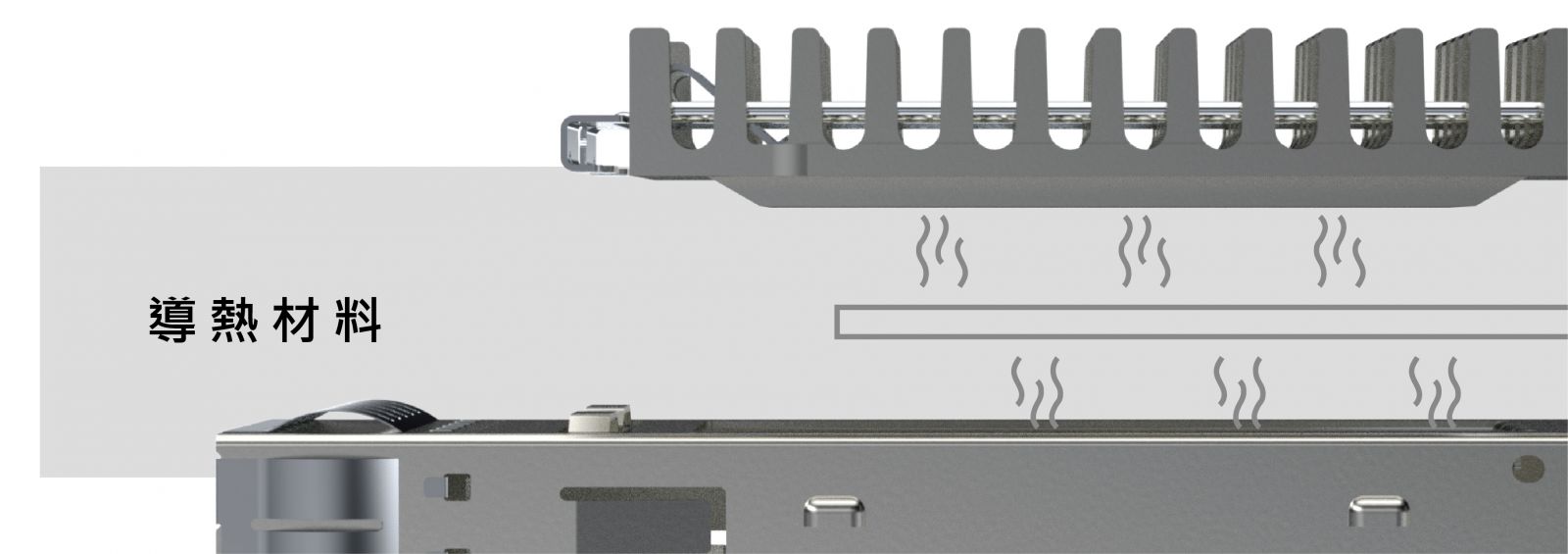 若是在散熱之外尚須滿足其他例如空間或是成本等方面需求,特殊導熱材料、塗層或導熱墊、導熱膠帶等配件搭配現有的散熱方案也是一種選擇。但這些材料不僅需要有效的導熱能力,也需經得起長時間高溫或是多次插拔仍能維持性能的考驗。